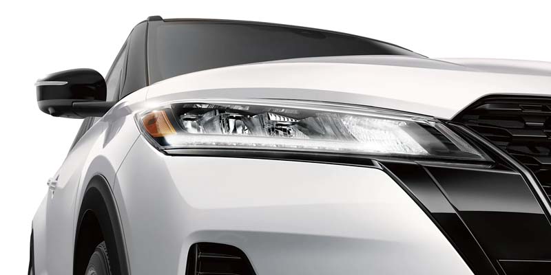 When you're looking into the 2023 Nissan Kicks, you can choose among three trims: S, SV, and SR. The base trim includes 16-inch steel wheels with plastic wheel covers, while the SV trim adds 17-inch alloy wheels and silver roof rails. The top-of-the-line SR trim comes with several exterior upgrades including LED headlights and foglights, dark chrome grille trim, and a rear roof spoiler.