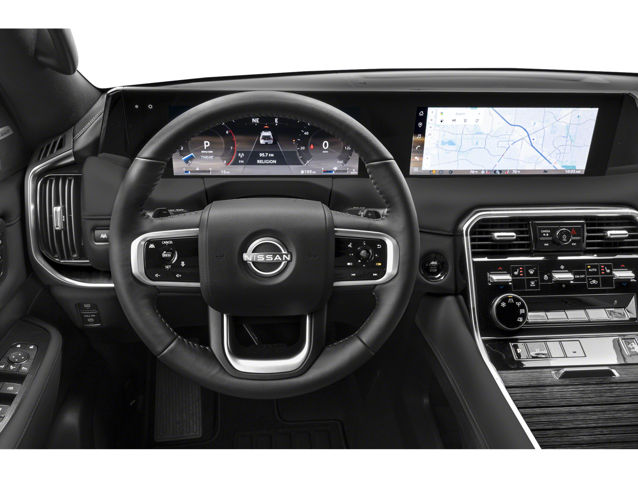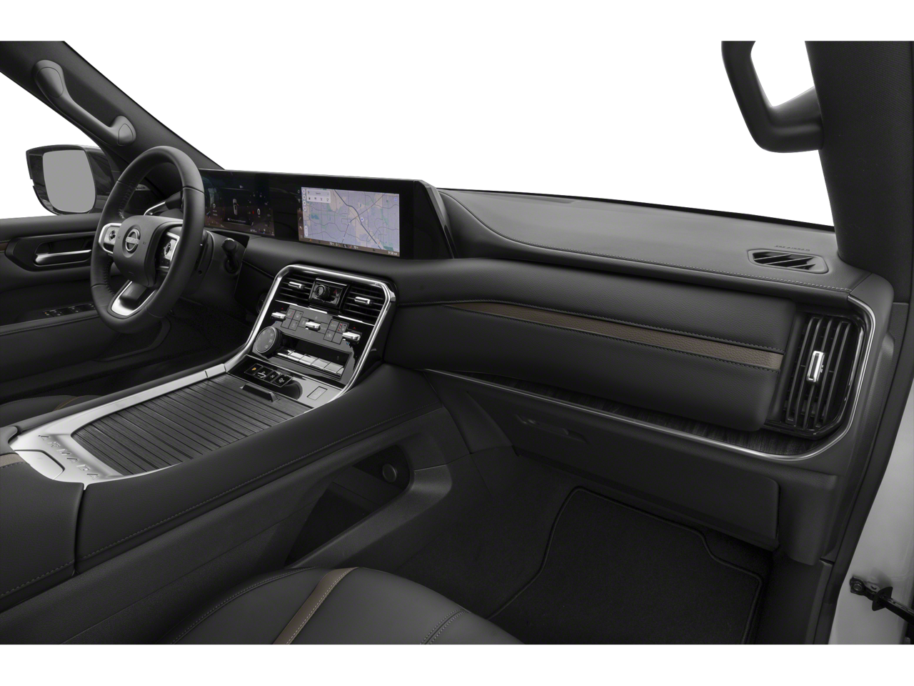 Well Equipped with: 4WD, 12 Speakers, 3rd row seats: split-bench, 4-Wheel Disc Brakes, ABS brakes, Air Conditioning, Alloy wheels, AM/FM radio: SiriusXM w/360L, Anti-whiplash front head restraints, Apple CarPlay/Android Auto, Auto High-beam Headlights, Auto tilt-away steering wheel, Auto-dimming door mirrors, Auto-dimming Rear-View mirror, Auto-leveling suspension, Automatic temperature control, Brake assist, Bumpers: body-color, Compass, Delay-off headlights, Driver door bin, Driver vanity mirror, Dual front impact airbags, Dual front side impact airbags, Electronic Stability Control, Emergency communication system: NissanConnect Services, Four wheel independent suspension, Front anti-roll bar, Front Bucket Seats, Front Center Armrest, Front dual zone A/C, Front reading lights, Fully automatic headlights, Garage door transmitter: myQ Connected Garage, Genuine wood dashboard insert, Heated door mirrors, Heated Front Bucket Seats, Heated front seats, Heated steering wheel, HVAC memory, Illuminated entry, Knee airbag, Leather steering wheel, Low tire pressure warning, Memory seat, Navigation system: Google Maps, Occupant sensing airbag, Outside temperature display, Overhead airbag, Overhead console, Panic alarm, Passenger door bin, Passenger vanity mirror, Power door mirrors, Power driver seat, Power Liftgate, Power passenger seat, Power steering, Power windows, Radio: NissanConnect with SiriusXM 360L, Rain sensing wipers, Rear air conditioning, Rear anti-roll bar, Rear reading lights, Rear seat center armrest, Rear window defroster, Rear window wiper, Reclining 3rd row seat, Remote keyless entry, Security system, Speed control, Speed-sensing steering, Speed-Sensitive Wipers, Split folding rear seat, Spoiler, Steering wheel memory, Steering wheel mounted audio controls, Tachometer, TailorFit Seat Trim, Telescoping steering wheel, Tilt steering wheel, Traction control, Trip computer, Turn signal indicator mirrors, Variably intermittent wipers, Voltmeter, and Wheels: 20 x 8.5J Machined and Painted Alloy.
