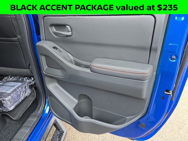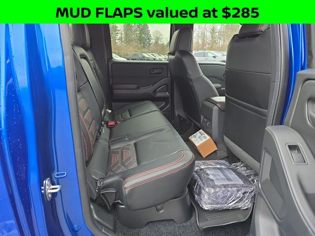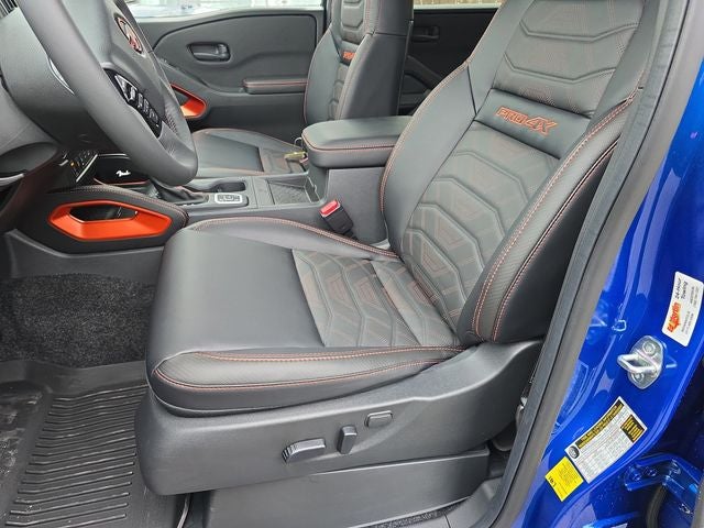 Well Equipped with: Black Accent Package, PRO Premium Package (Auto-Dimming Mirror, Auto-Tilt & Slide Sunroof w/Manual Shade, Fender Premium Audio System w/10 Speakers, HomeLink UGDO, Leather Seat Trim, Nissan Door-to-Door Navigation, Partial Under-Seat Storage Delete, and Traffic Sign Recognition (TSR)), PRO-4X Convenience Package (Heated Steering Wheel, Intelligent Around View Monitor (I-AVM), and Wireless Charging for Personal Devices), Tow Package (T11), 4WD, 17 Painted Alloy Wheels, 2-Tone Beadlock Style Wheel, 3.692 Axle Ratio, 4-Wheel Disc Brakes, 6 Speakers, ABS brakes, Air Conditioning, All Season Floor Mats w/PRO-4X Logo, Alloy wheels, AM/FM radio: SiriusXM, Anti-whiplash front head restraints, Auto High-beam Headlights, Automatic temperature control, Blind Spot Warning, Brake assist, Bumpers: body-color, Delay-off headlights, Driver door bin, Driver vanity mirror, Dual front impact airbags, Dual front side impact airbags, Electronic Stability Control, Electronic Tailgate Lock, Emergency communication system, Essentials Kit, Front anti-roll bar, Front Bucket Seats, Front Center Armrest, Front dual zone A/C, Front fog lights, Front reading lights, Front wheel independent suspension, Fully automatic headlights, Grille Accent Lighting, Heated Front Bucket Seats, Heated front seats, Heated steering wheel, Illuminated entry, Knee airbag, Leather steering wheel, Low tire pressure warning, Mud Flaps, Occupant sensing airbag, Off-Road Style Step Rails, Overhead airbag, Overhead console, Panic alarm, Passenger door bin, Passenger vanity mirror, Power door mirrors, Power driver seat, Power passenger seat, Power steering, Power windows, Premium Paint, PRO Embroidered Premium Cloth Seat Trim, PRO-4X Carpeted Floor Mats, Radio data system, Radio: SXM/AM/FM/AUX/USB Audio System, Rear anti-roll bar, Rear seat center armrest, Rear side impact airbag, Rear step bumper, Remote keyless entry, Security system, Soft Tonneau Cover (6.0' Bed), Speed control, Speed-sensing steering, Split folding rear seat, Steering wheel mounted audio controls, Tachometer, Telescoping steering wheel, Tilt steering wheel, Traction control, Trip computer, Variably intermittent wipers, Voltmeter, and Wireless Apple CarPlay/Wireless Android Auto.