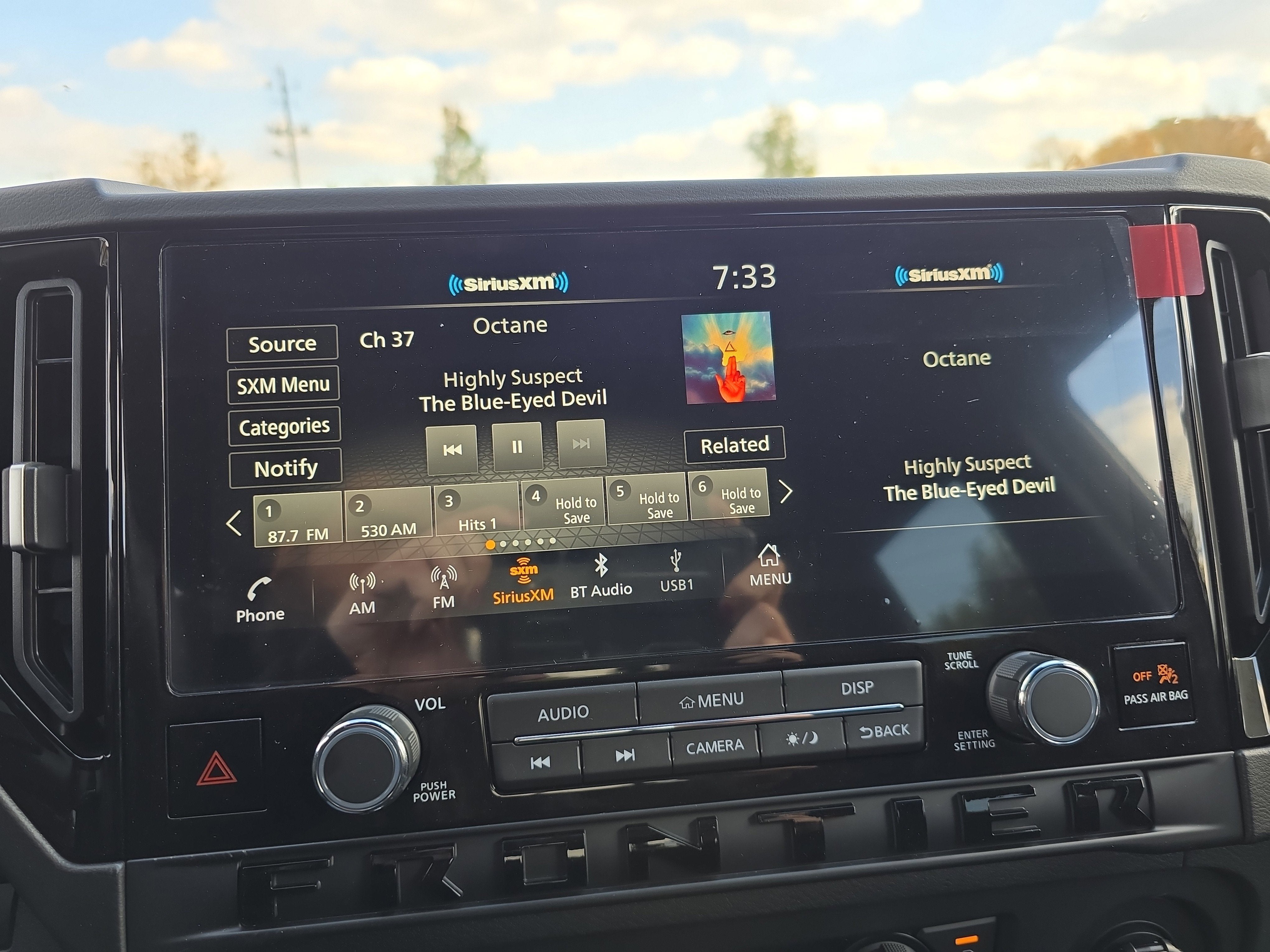 - Radio: SXM/AM/FM/AUX/USB Audio System -inc: 6 speakers, 12.3" color touch-screen display, wireless Apple CarPlay, wireless Android Auto, Bluetooth® hands-free phone system and streaming (audio or text message), voice recognition for audio features, Siri Eyes Free, NissanConnect services, Wi-Fi hotspot, 1 USB-A and 1 USB-C front ports and SiriusXM radio w/advanced audio features