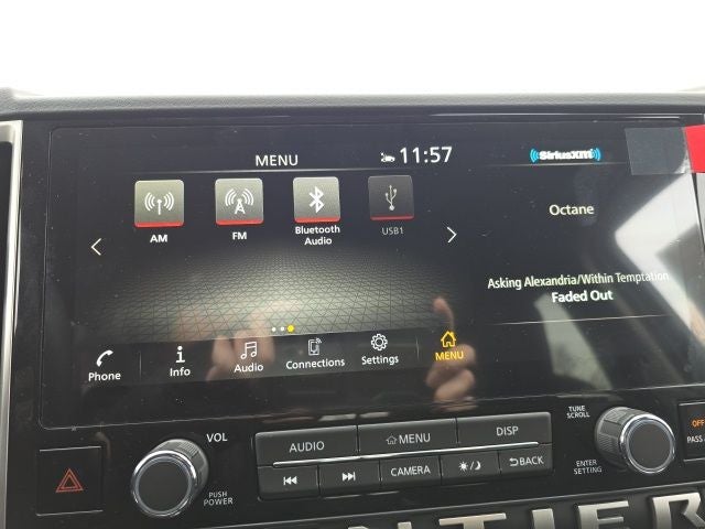 - Radio: SXM/AM/FM/AUX/USB Audio System -inc: 6 speakers, 12.3" color touch-screen display, wireless Apple CarPlay, wireless Android Auto, Bluetooth® hands-free phone system and streaming (audio or text message), voice recognition for audio features, Siri Eyes Free, NissanConnect services, Wi-Fi hotspot, 1 USB-A and 1 USB-C front ports and SiriusXM radio w/advanced audio features