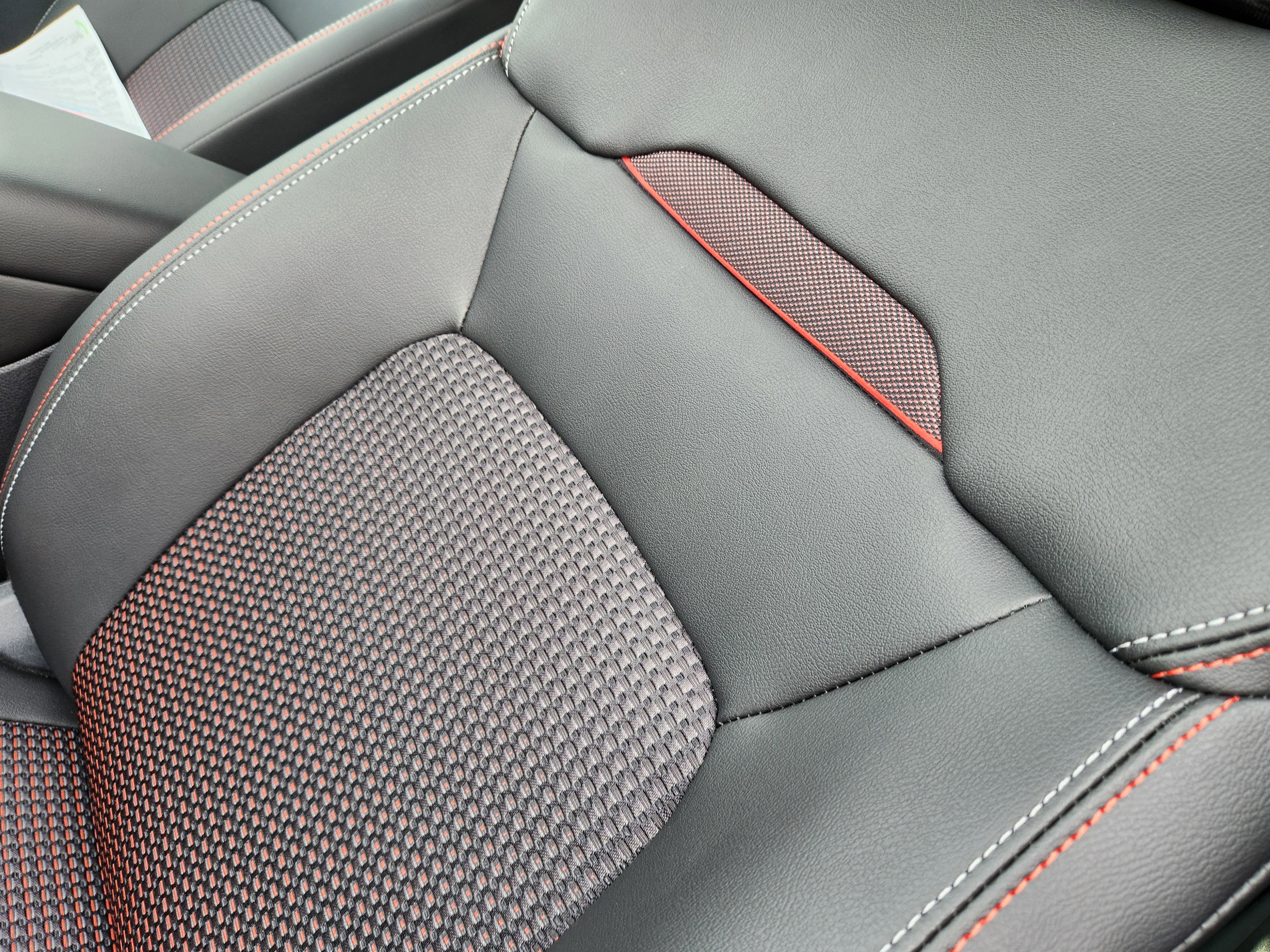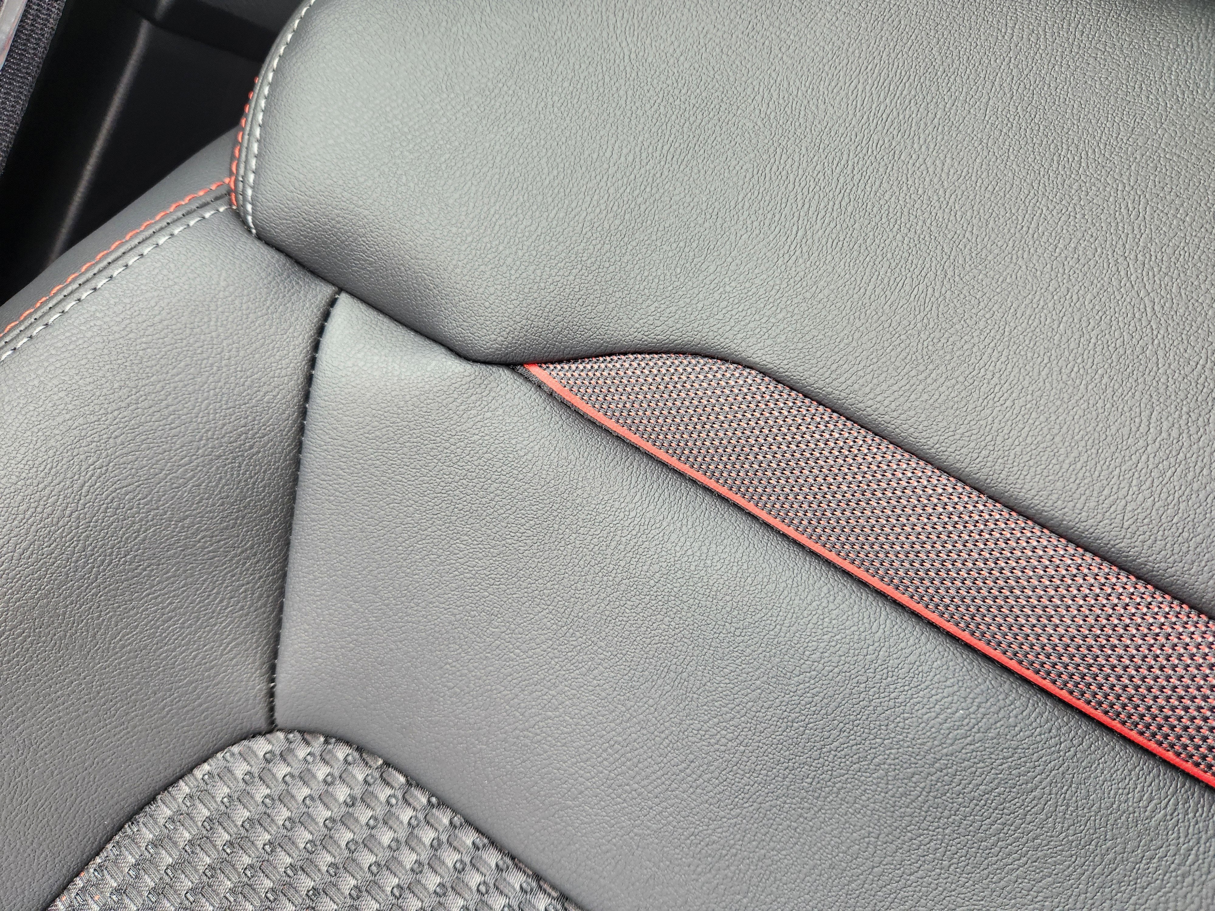 - Sport cloth seat trim with orange accents and stitching