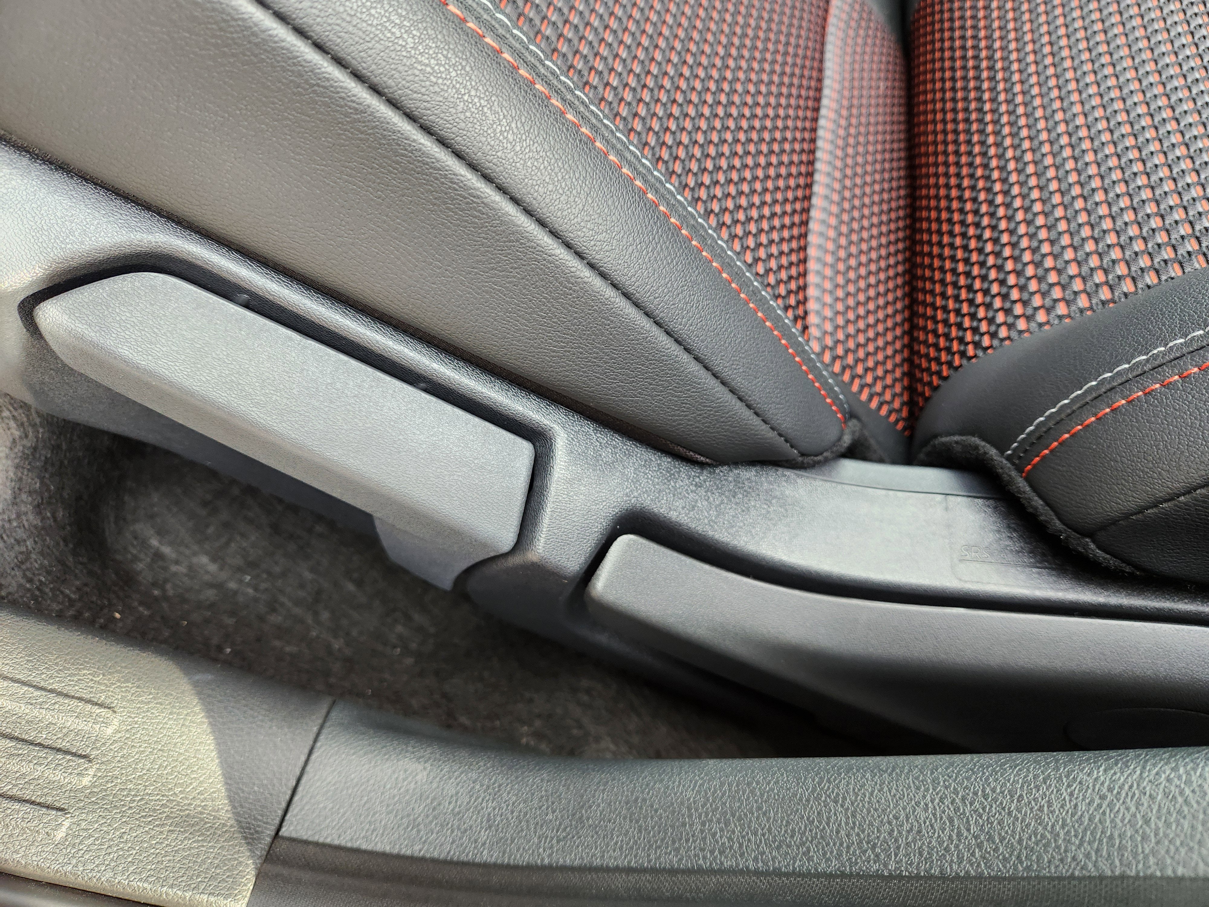 - Sport cloth seat trim with orange accents and stitching
