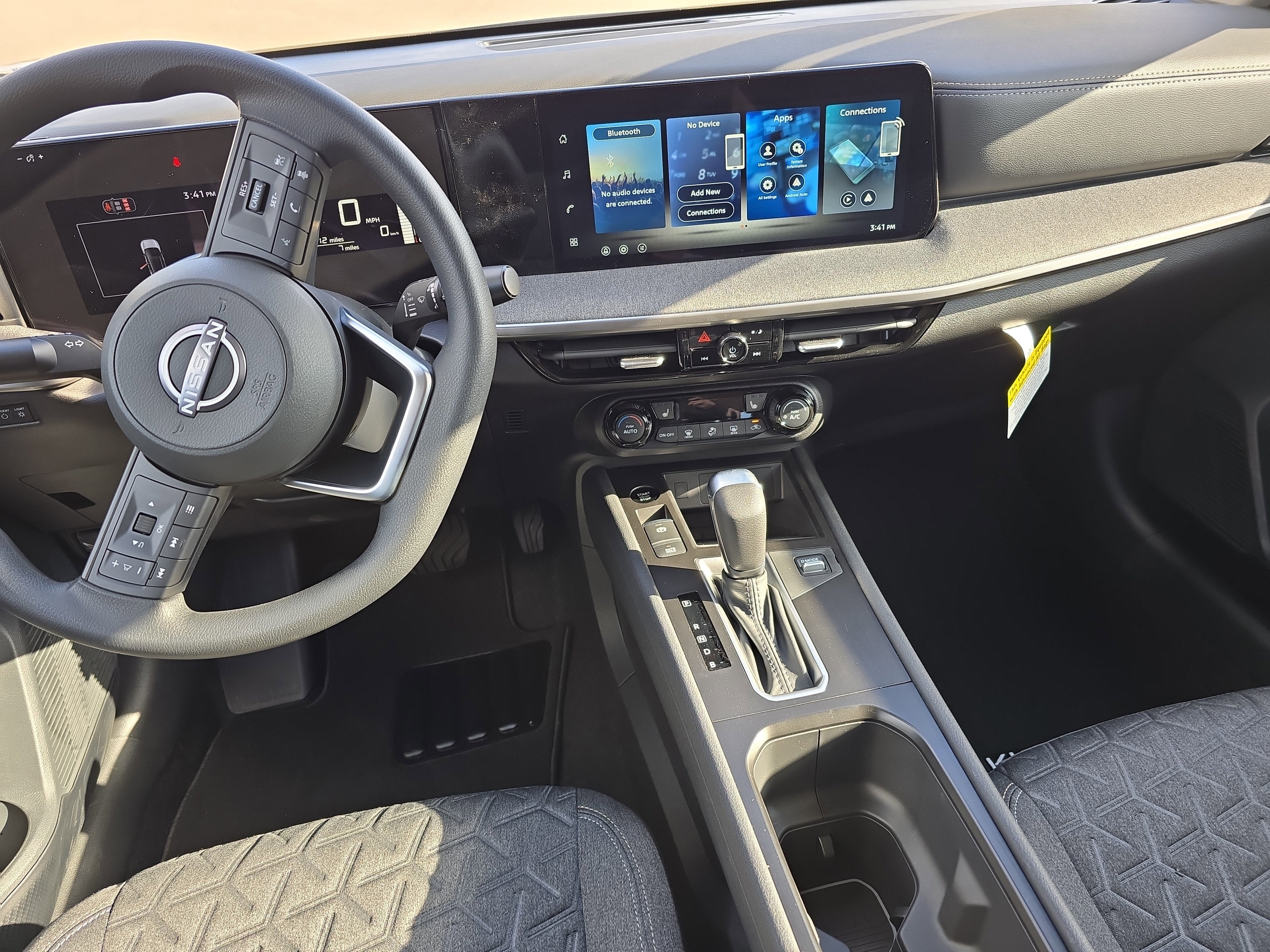 - Radio: AM/FM/SiriusXM Audio System -inc: 12.3" color touchscreen display w/4 speakers, Bluetooth® hands-free phone system, streaming audio via Bluetooth®, NissanConnect featuring wireless Apple CarPlay, wireless Android Auto, Siri eyes free and hands-free text messaging assistant, audio and Bluetooth® steering wheel switches