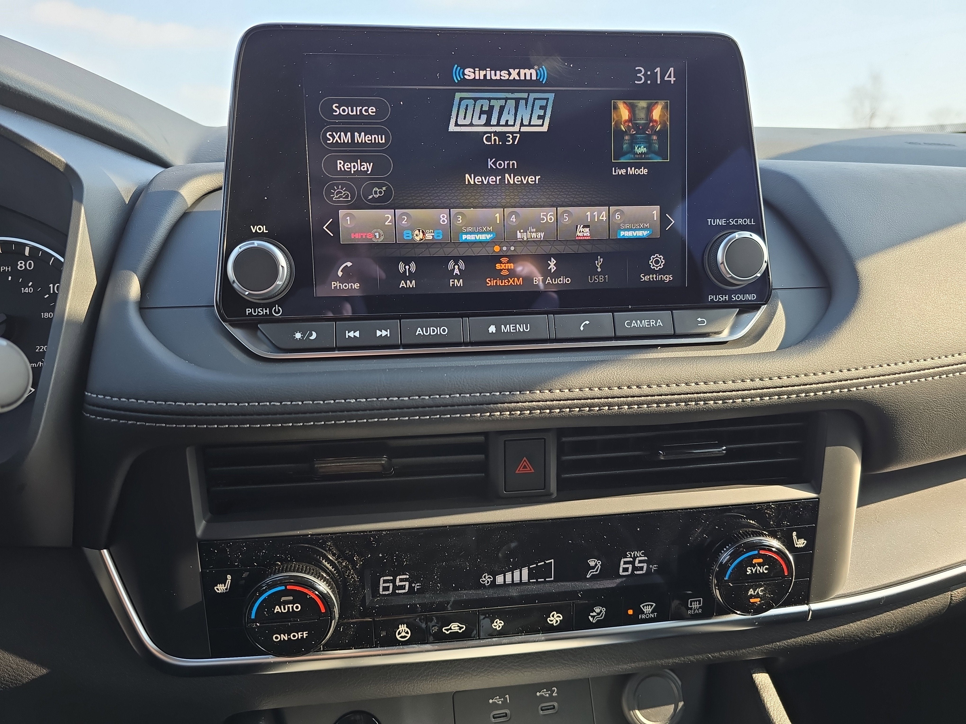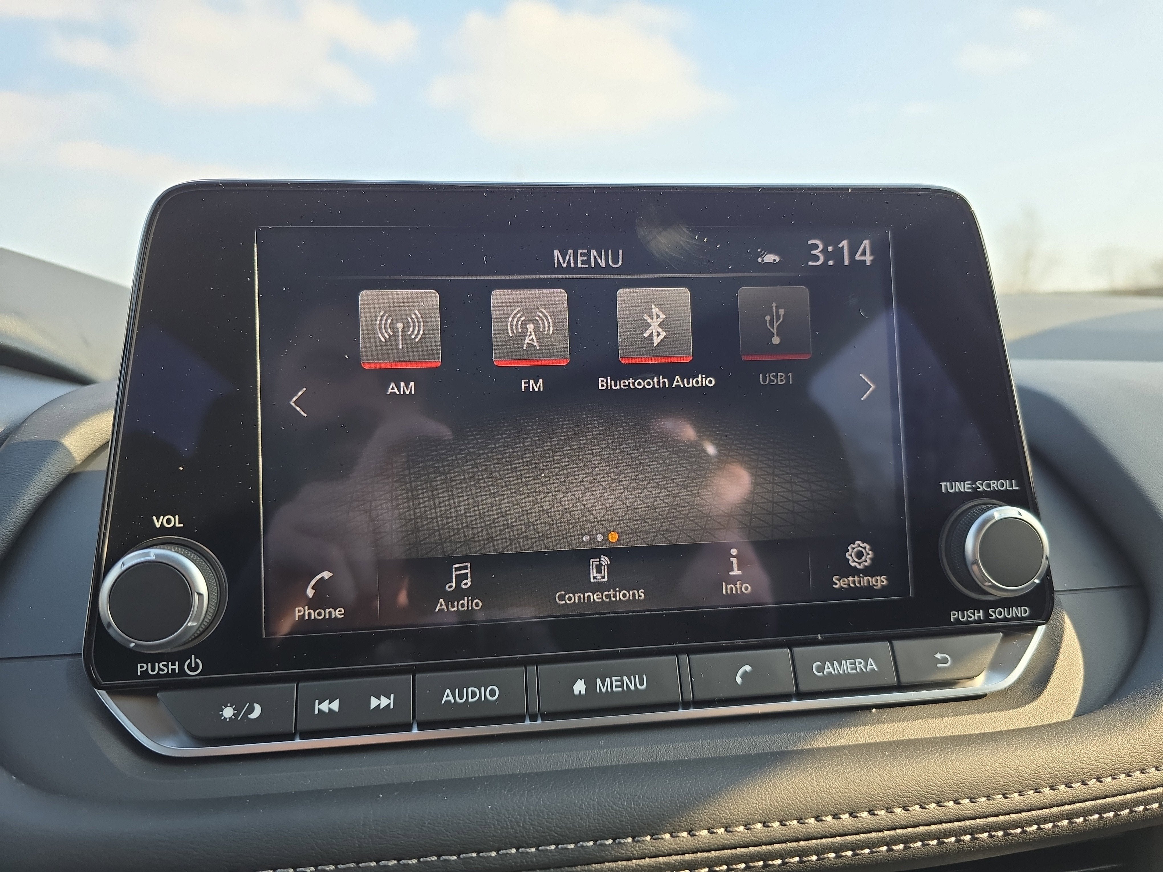 - Radio: AM/FM NissanConnect -inc: 6 speakers plus 2 tweeters, Apple CarPlay, Android Auto, 8" color touch screen display, Bluetooth®, 2 front USB type-C, Wi-Fi hotspot and NissanConnect Services powered by SiriusXM