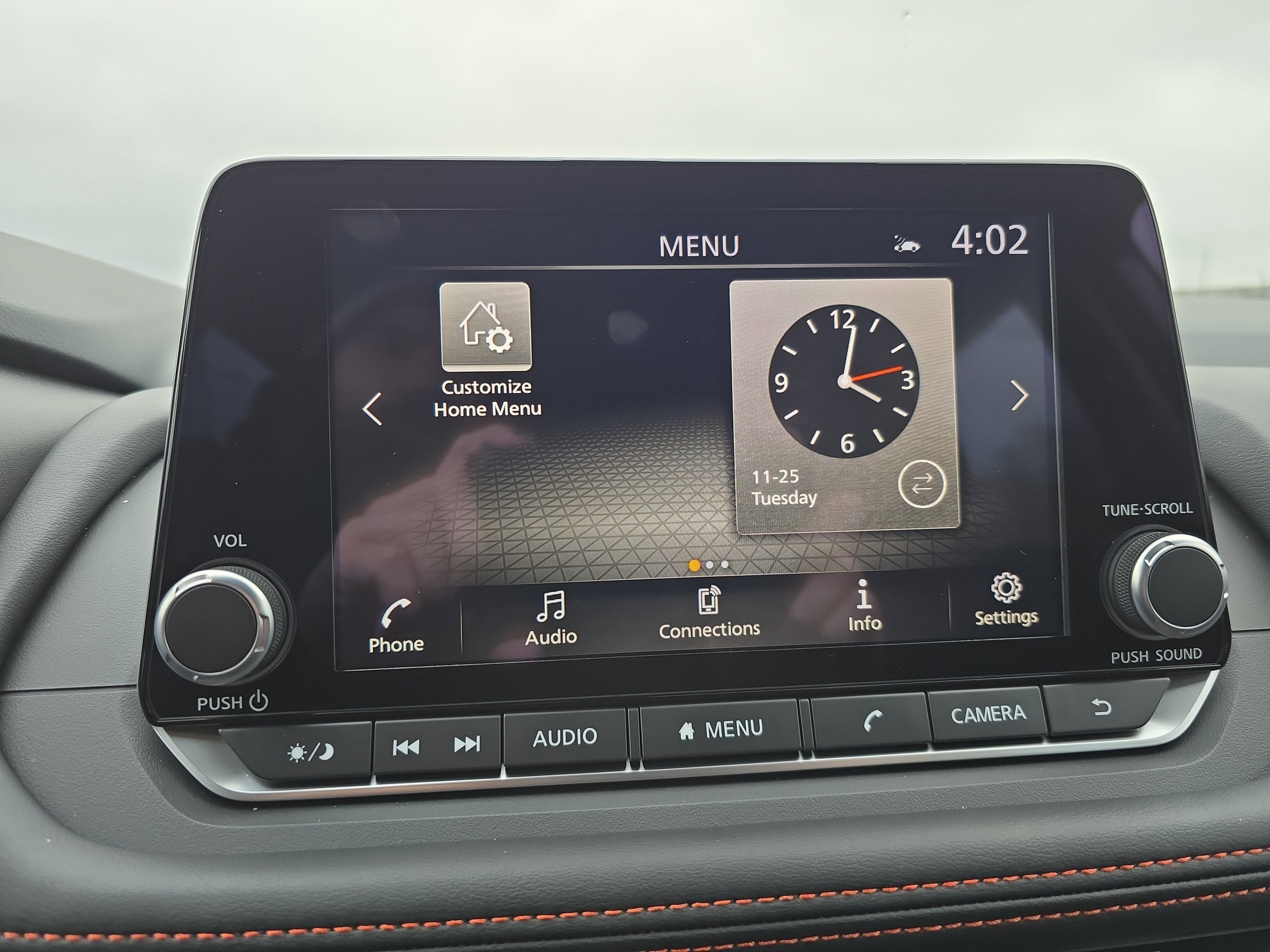 - Radio: AM/FM NissanConnect -inc: 6 speakers plus 2 tweeters, Apple CarPlay, Android Auto, 8" color touch screen display, Bluetooth®, 2 front USB type-C, Wi-Fi hotspot and NissanConnect Services powered by SiriusXM