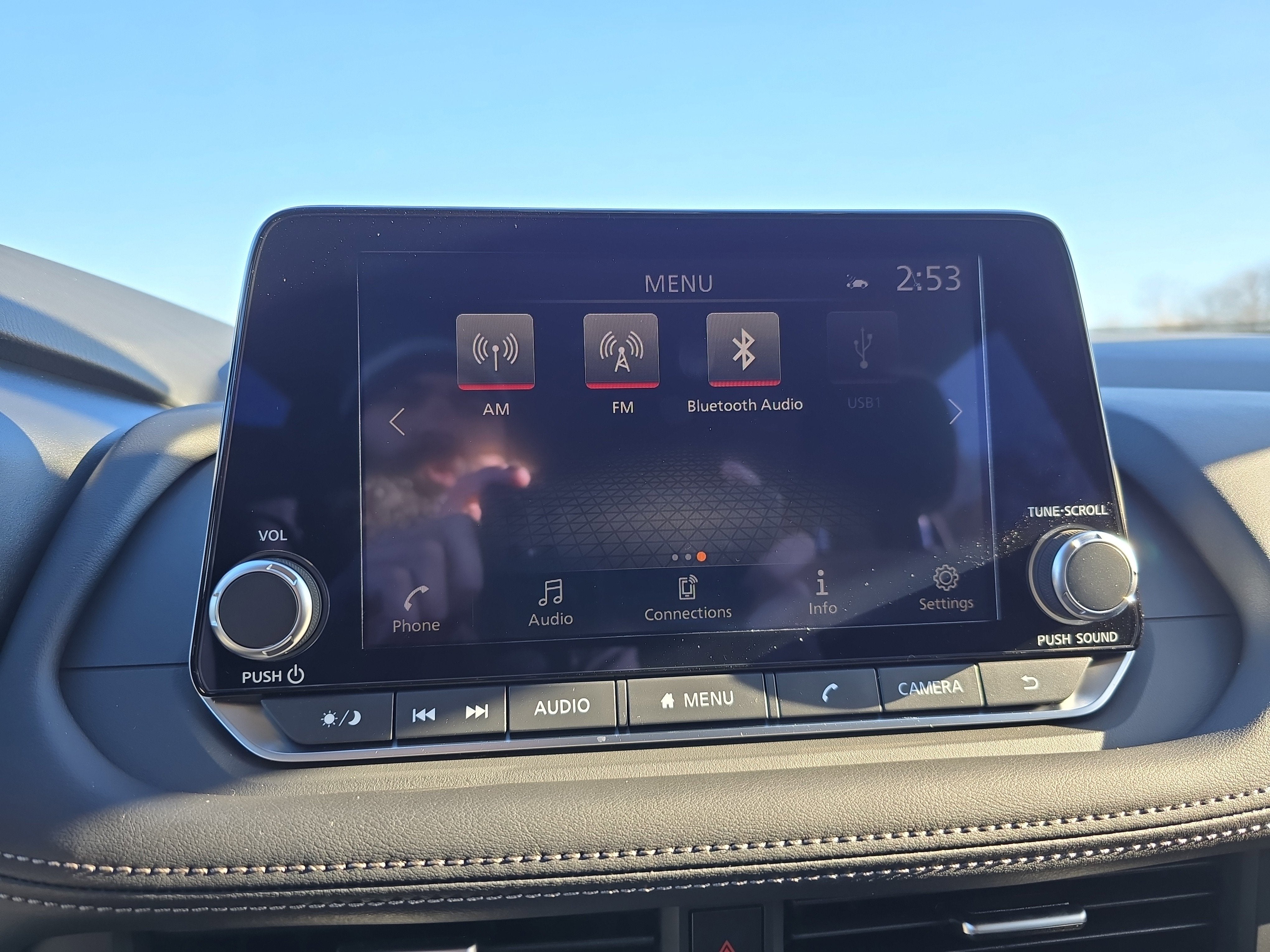 - Radio: AM/FM NissanConnect -inc: 6 speakers plus 2 tweeters, Apple CarPlay, Android Auto, 8" color touch screen display, Bluetooth®, 2 front USB type-C, Wi-Fi hotspot and NissanConnect Services powered by SiriusXM