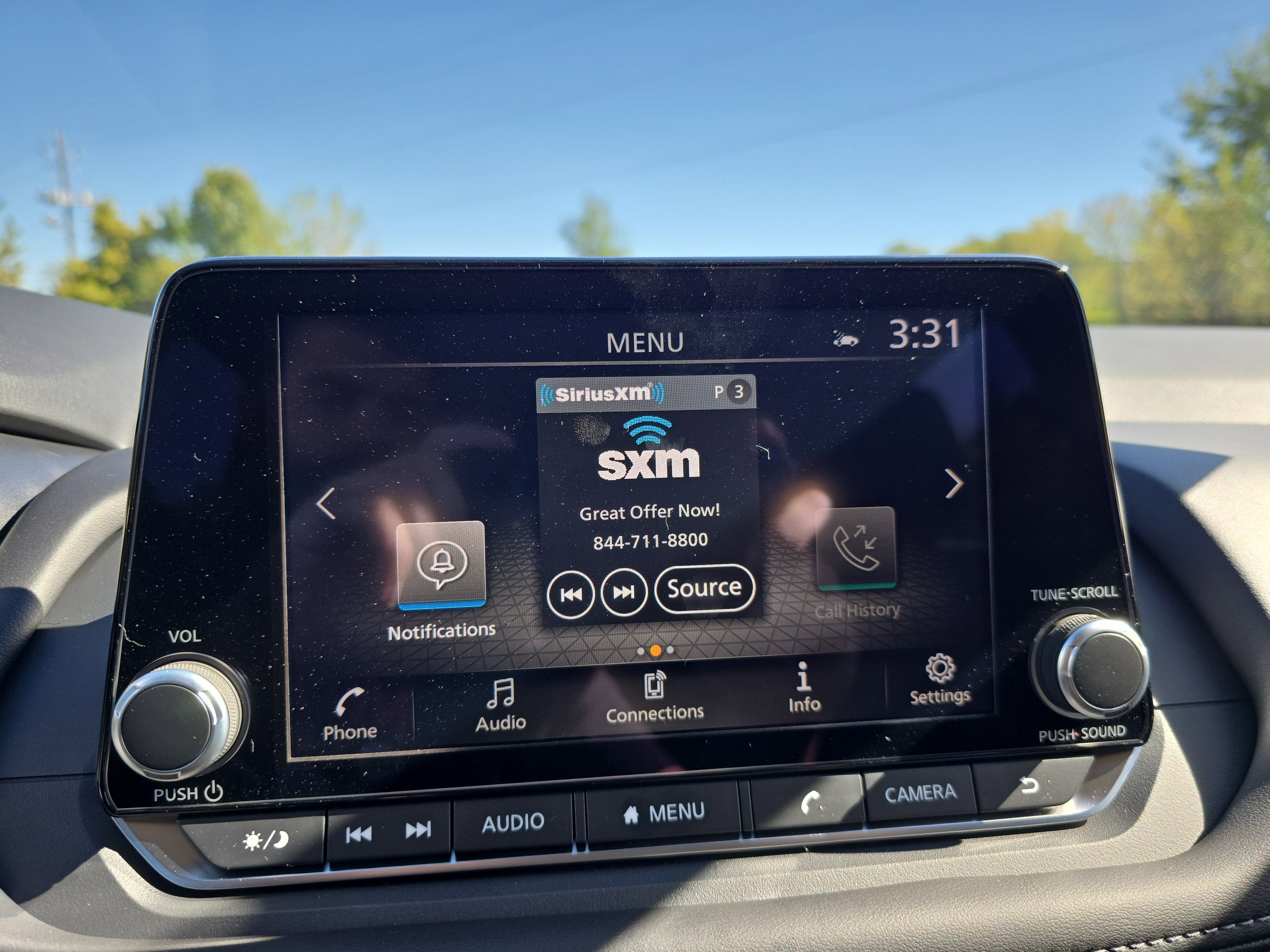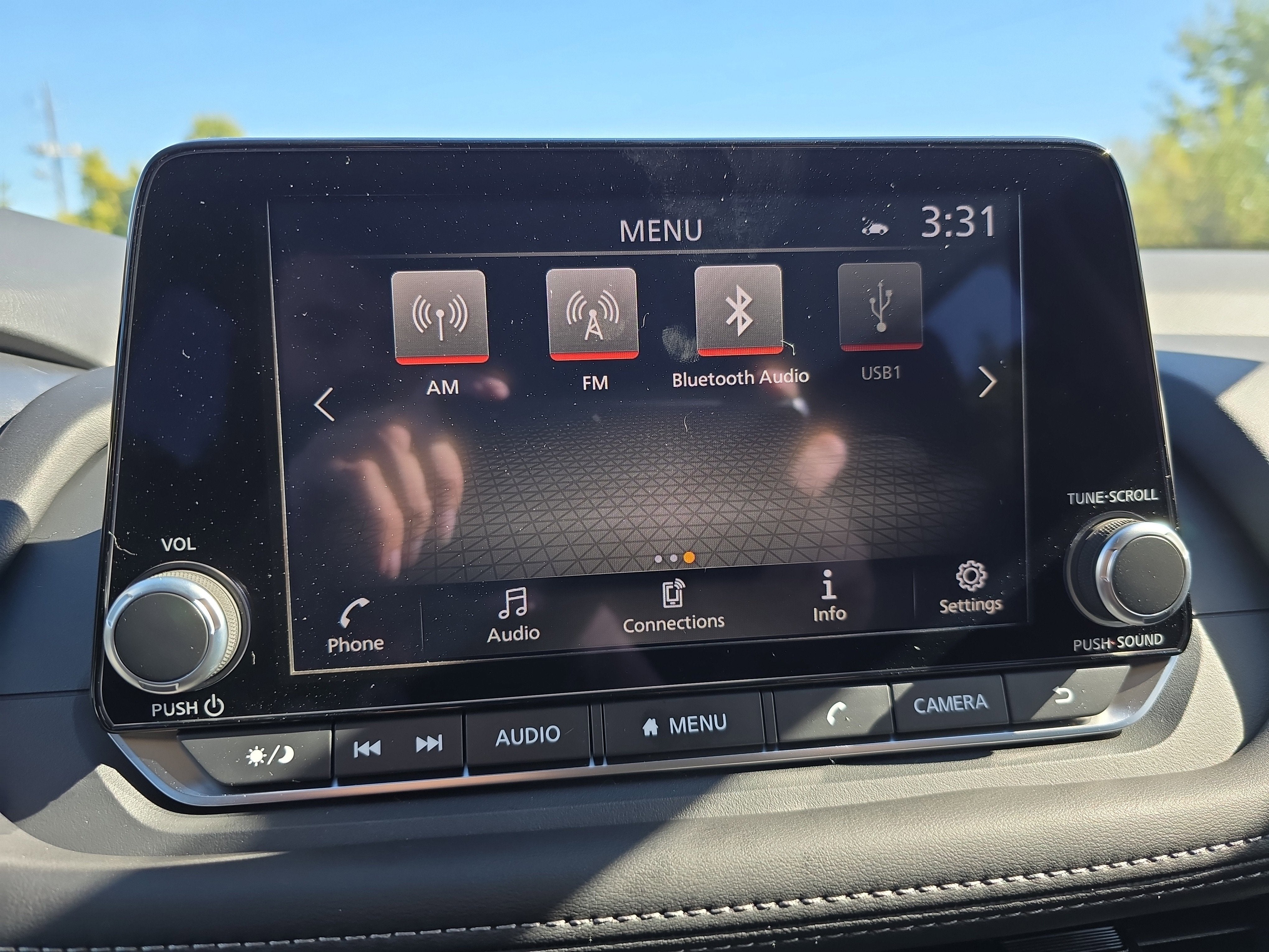 - Radio: AM/FM NissanConnect -inc: 6 speakers plus 2 tweeters, Apple CarPlay, Android Auto, 8" color touch screen display, Bluetooth®, 2 front USB type-C, Wi-Fi hotspot and NissanConnect Services powered by SiriusXM
