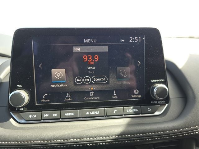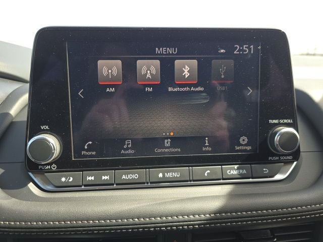 - Radio: AM/FM NissanConnect -inc: 6 speakers plus 2 tweeters, Apple CarPlay, Android Auto, 8" color touch screen display, Bluetooth®, 2 front USB type-C, Wi-Fi hotspot and NissanConnect Services powered by SiriusXM