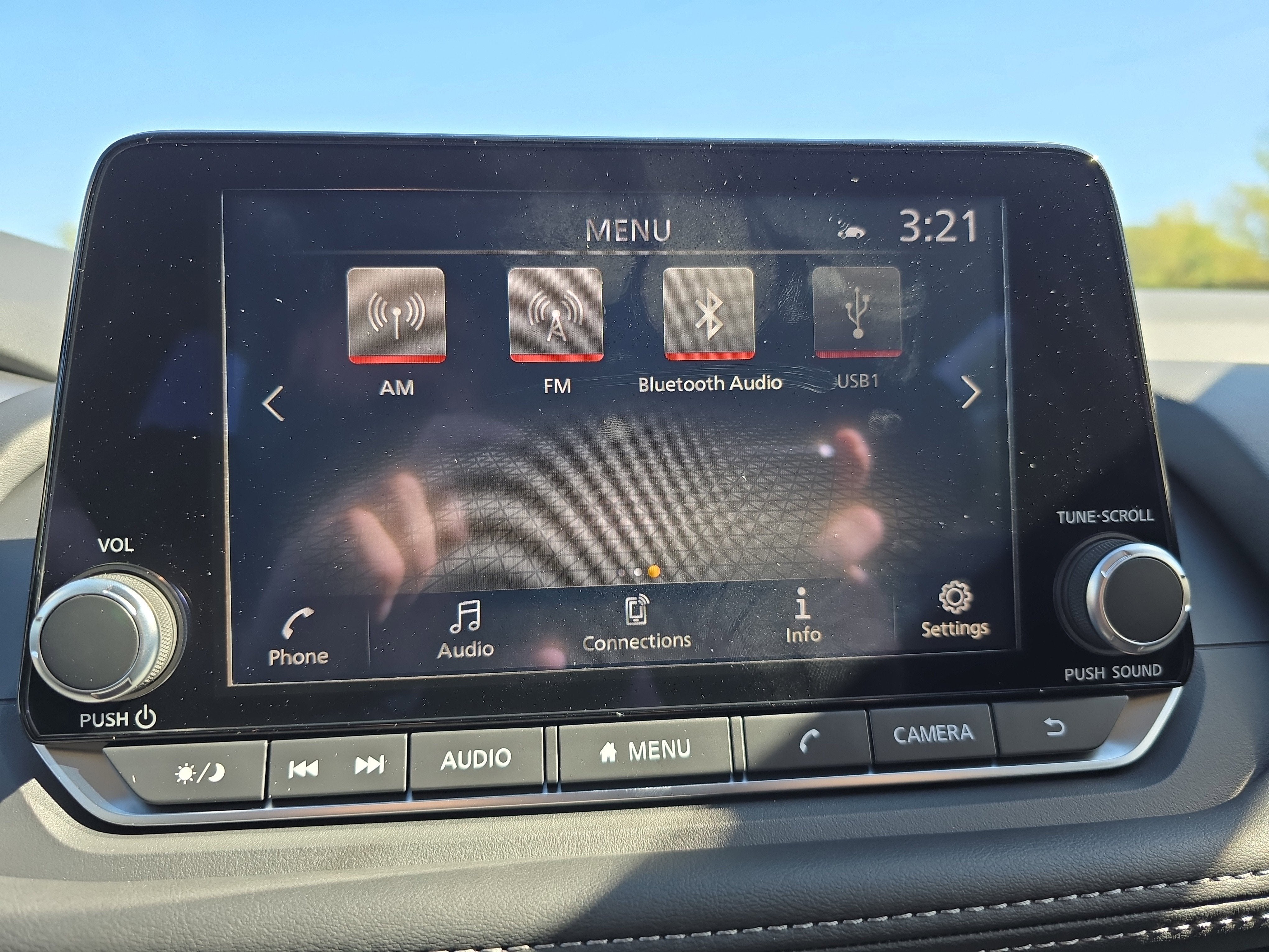 - Radio: AM/FM NissanConnect -inc: 6 speakers plus 2 tweeters, Apple CarPlay, Android Auto, 8" color touch screen display, Bluetooth®, 2 front USB type-C, Wi-Fi hotspot and NissanConnect Services powered by SiriusXM