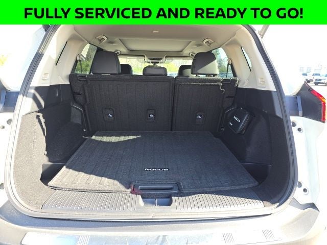 Well Equipped with: SV Premium Package (DISC) (Heated Driver & Front Passenger Seats, Heated Leather Wrapped Steering Wheel, Leatherette Door Trim Inserts w/Stitch, Panoramic Moonroof, Power Liftgate, PRIMATEX Leatherette Seat Trim (DISC), Rear Door Sunshades, Rear Personal Lights, and Silver Painted Roof Rails), Nissan Certified Certified, AWD, 18 Aluminum Alloy Wheels, 4-Wheel Disc Brakes, 5.604 Axle Ratio, 6 Speakers, ABS brakes, Air Conditioning, Alloy wheels, AM/FM Radio, AM/FM radio: SiriusXM, Auto High-beam Headlights, Automatic temperature control, Black Splash Guards (Set of 4), Brake assist, Bumpers: body-color, Chrome Rear Bumper Protector, Cloth Seat Trim, Delay-off headlights, Driver door bin, Driver vanity mirror, Dual front impact airbags, Dual front side impact airbags, Electronic Stability Control, Emergency communication system: NissanConnect Services, First Aid Kit, Floor Mats w/1-Piece Cargo Area Protector, Four wheel independent suspension, Front anti-roll bar, Front Bucket Seats, Front Center Armrest, Front dual zone A/C, Front reading lights, Fully automatic headlights, Heated door mirrors, Illuminated entry, Knee airbag, Low tire pressure warning, NissanConnect featuring Apple CarPlay and Android Auto, Occupant sensing airbag, Outside temperature display, Overhead airbag, Overhead console, Panic alarm, Passenger door bin, Passenger vanity mirror, Power door mirrors, Power driver seat, Power steering, Power windows, Radio data system, Rear anti-roll bar, Rear Parking Sensors, Rear seat center armrest, Rear side impact airbag, Rear window defroster, Rear window wiper, Remote keyless entry, Speed control, Speed-Sensitive Wipers, Split folding rear seat, Spoiler, Steering wheel mounted audio controls, Tachometer, Telescoping steering wheel, Tilt steering wheel, Traction control, Trip computer, and Variably intermittent wipers.