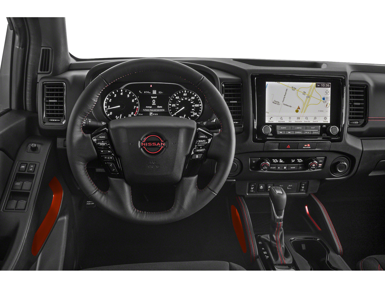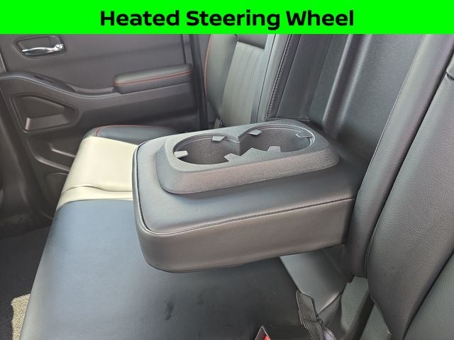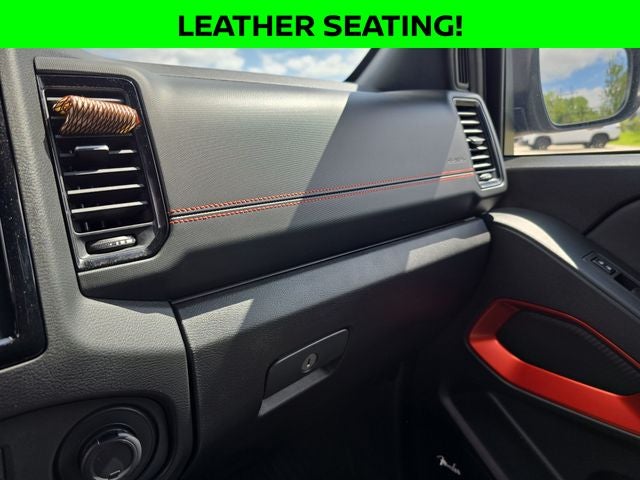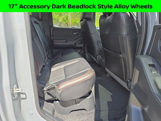Well Equipped with: Off-Road Protection Package (All-Season Floor Mats), PRO Convenience Package (120V Power Outlet in Bed, 120V Power Outlet in Rear Center Console, Bed Under-Rail Lighting, Heated Front Seats, Heated Outside Mirrors, Heated Steering Wheel, Intelligent Around View Monitor (I-AVM), Remote Engine Starter, Spray-In Bedliner, Trailer Hitch w/Wiring Harness, Utili-Track System, and Wireless Charging For Personal Devices), PRO Premium Package (17 Accessory Dark Beadlock Style Alloy Wheels, Auto-Dimming Mirror, Auto-Tilt & Slide Sunroof w/Manual Shade, Fender Premium Audio System w/10 Speakers, Front & Rear Leather Seat Trim (1st/2nd Rows), HomeLink UGDO, and Partial Under-Seat Storage Delete), Tow Package (T11), Frontier PRO-4X, Nissan Certified Certified, 4WD, 17 Painted Alloy Wheels, 3.692 Axle Ratio, 4-Wheel Disc Brakes, 6 Speakers, ABS brakes, Air Conditioning, Alloy wheels, AM/FM radio: SiriusXM, Anti-whiplash front head restraints, Automatic temperature control, Brake assist, Bumpers: body-color, Compass, Delay-off headlights, Driver door bin, Driver vanity mirror, Dual front impact airbags, Dual front side impact airbags, Electronic Stability Control, Electronic Tailgate Lock, Emergency communication system, Front anti-roll bar, Front Bucket Seats, Front Center Armrest, Front dual zone A/C, Front fog lights, Front reading lights, Front wheel independent suspension, Fully automatic headlights, Illuminated entry, Knee airbag, Leather Shift Knob, Leather steering wheel, Low tire pressure warning, Navigation System, NissanConnect featuring Apple CarPlay and Android Auto, Occupant sensing airbag, Off-Road Style Step Rails, Overhead airbag, Overhead console, Panic alarm, Passenger door bin, Passenger vanity mirror, Power door mirrors, Power driver seat, Power steering, Power windows, PRO Embroidered Premium Cloth Seat Trim, PRO-4X Carpeted Floor Mats, PRO-4X Mud Flaps, Radio data system, Radio: 1CD/SXM/AM/FM/AUX/USB/MP3/WMA Audio System, Rear anti-roll bar, Rear seat center armrest, Rear side impact airbag, Rear step bumper, Remote keyless entry, Security system, Speed control, Speed-sensing steering, Split folding rear seat, Steering wheel mounted audio controls, Tachometer, Tilt steering wheel, Traction control, Trip computer, USB Charging Cable Kit, Variably intermittent wipers, and Voltmeter.